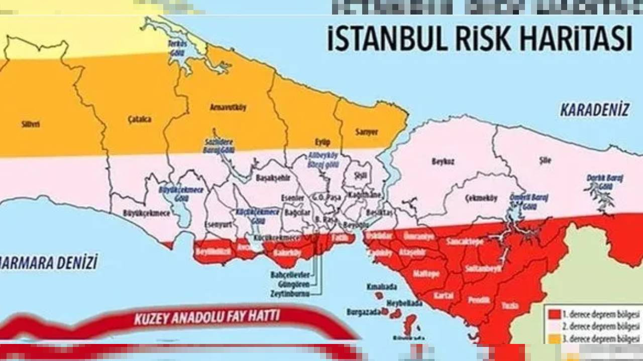 Haritada fay hatlarına yakınlığa göre birinci derece riskli ilçeler, Avrupa yakasında Avcılar, Küçükçekmece, Bakırköy, Beylikdüzü, Güngören, Zeytinburnu, Bahçelievler ve Fatih, Anadolu yakasında ise Kadıköy, Üsküdar, Ataşehir, Ümraniye, Maltepe, Kartal, Pendik, Sultanbeyli, Sancaktepe, Tuzla ve Adalar olarak öne çıkıyor.