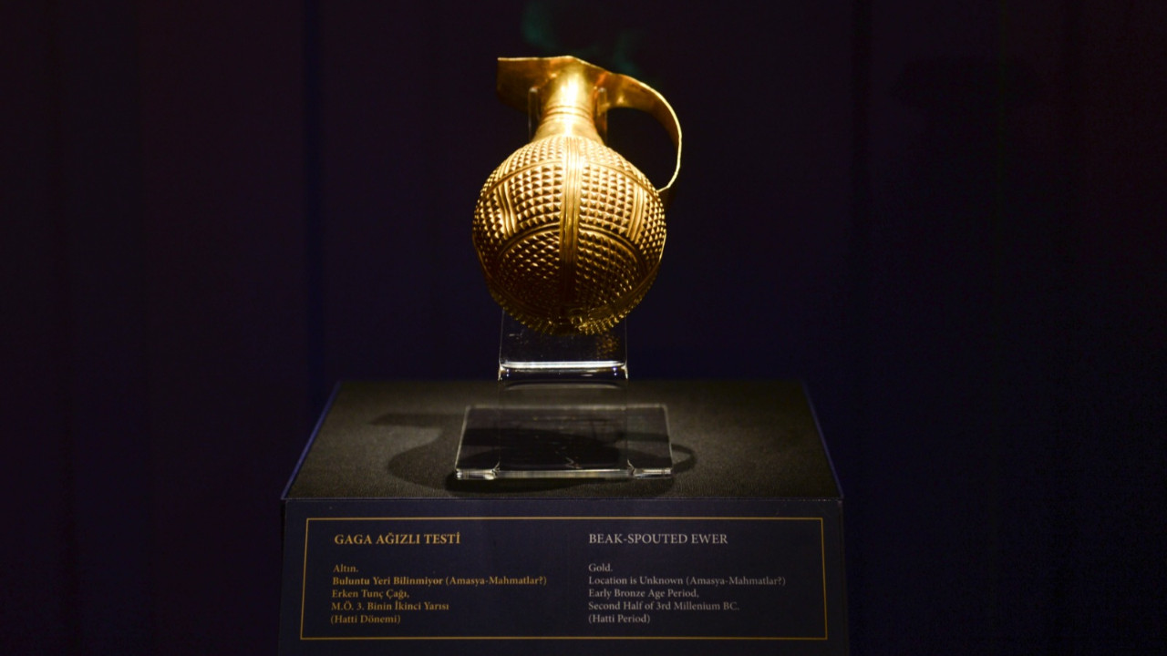 Anadolu’da yaşamış Hattiler dönemine ait 4 bin 250 yıllık altın gaga ağızlı testi, Londra'daki müzede tespit edilerek, Türkiye'ye iade edildi. Kültür ve Turizm Bakanı Mehmet Nuri Ersoy, Anadolu Medeniyetleri Müzesi'deki yerini alan eserin kimliği belirsiz kişilerce bağlamından koparıldığını belirterek, "Bu kültürel miras, bağlı bulunduğu ve ait olduğu topraklara geri dönmüştür" dedi.