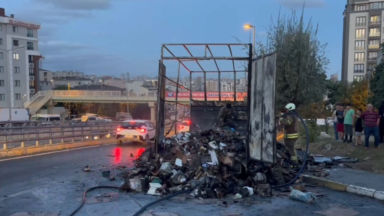 Küçükçekmece'de kargo kamyoneti alev alev yandı