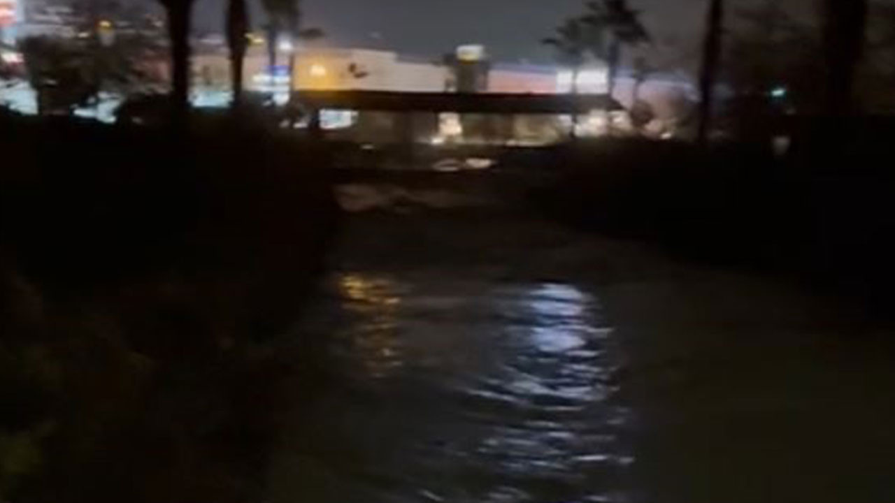 Kuşadası'nda dere taştı, alışveriş merkezi sular altında kaldı