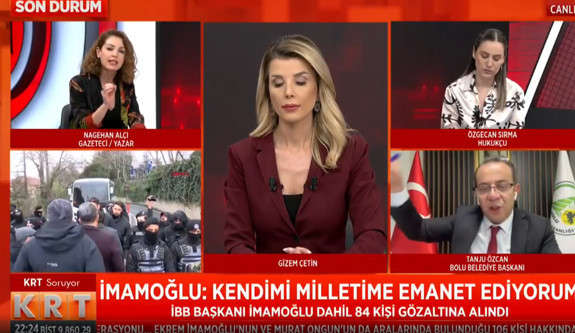 Abone Olİstanbul Büyükşehir Belediye Başkanı Ekrem İmamoğlu'nun gözaltına alınması sonrası KRT'de düzenlenen programda Bolu Belediye Başkanı Tanju Özcan ve gazeteci Nagehan Alçı arasında sert bir tartışma yaşandı. Özcan'ın Ergenekon ve Balyoz davalarına atıfta bulunarak yaptığı açıklamalar, Alçı'nın tepkisiyle karşılaştı. Canlı yayında tansiyonun yükseldiği anlar, izleyicilerin dikkatini çekti.