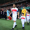Ay-yıldızlı futbolcularla el ele yürüyen çocuklar, tribünlerden büyük alkış aldı.