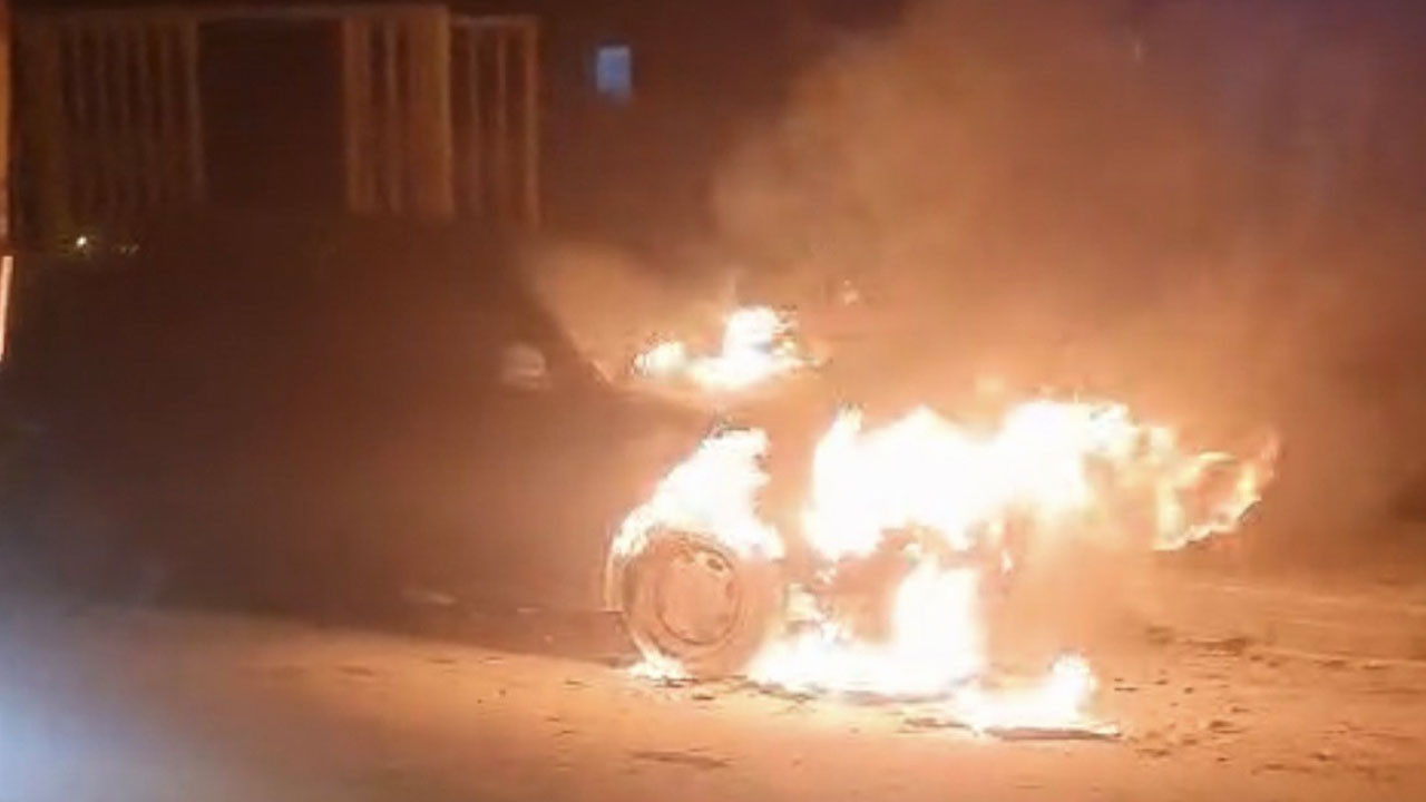 Park halindeyken yanan otomobil kullanılamaz hale geldi