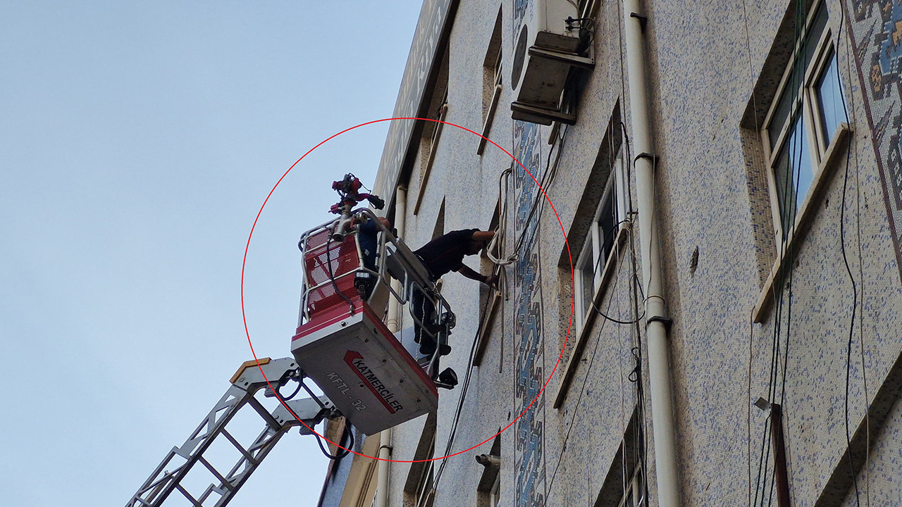 Adrese sağlık, polis ve itfaiye ekipleri sevk edildi. Olay yerine gelen polis ekipleri, itfaiye aracının merdiveniyle iş yerine girdi.