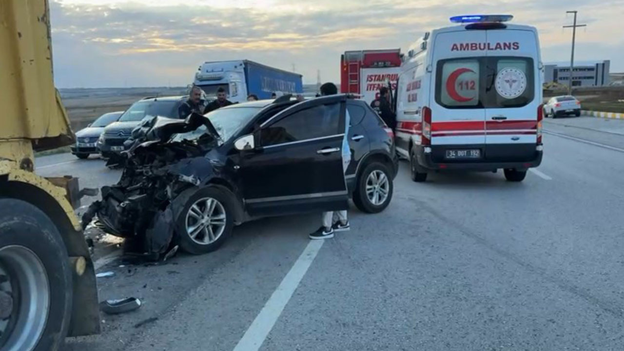 Silivri’de otomobil hafriyat kamyonuna çarptı: 2 yaralı