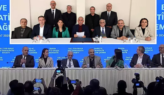 Abone OlToplantı, saat 17:00’de başladı ve heyet, Öcalan’ın mesajını paylaşmadan önce Öcalan’ın yıllar sonra çekilen ilk fotoğrafı ekrana yansıtıldı. Fotoğrafta, Öcalan’ın yanı sıra heyetten Sırrı Süreyya Önder, Pervin Buldan, Ahmet Türk, DEM Parti Eş Genel Başkanları Tuncer Bakırhan ve Tülay Hatimoğulları, İstanbul Milletvekili Cengiz Çiçek ve Asrın Hukuk Bürosu avukatı Faik Özgür Erol yer aldı. Bu kare, mesajın ağırlığını bir kat daha artırdı. Öcalan’ın çağrısı, Ahmet Türk tarafından Kürtçe, Pervin Buldan tarafından Türkçe okundu; aynı zamanda Arapça ve İngilizce çevirileriyle uluslararası kamuoyuna ulaştırıldı.