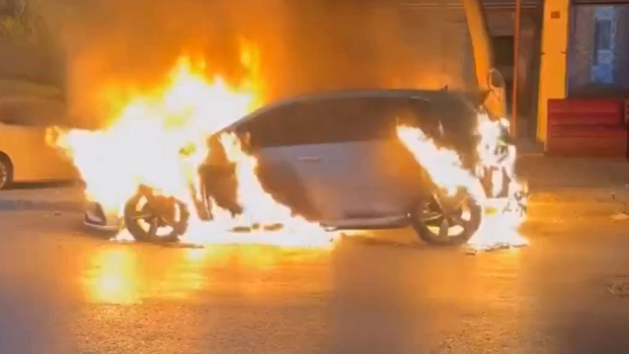 Sultangazi’de park halindeki otomobil yandı