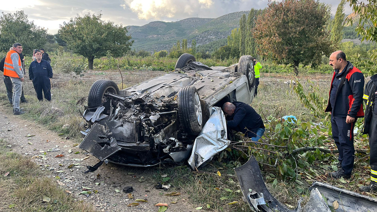 Amasya'da kontrolden çıkan otomobilin takla atıp, tarlaya uçtuğu kazada sürücü İsmail (30) ve 7 aylık oğlu Mirza yaralandı, eşi Ebrar Melike Bal (27) yaşamını yitirdi.