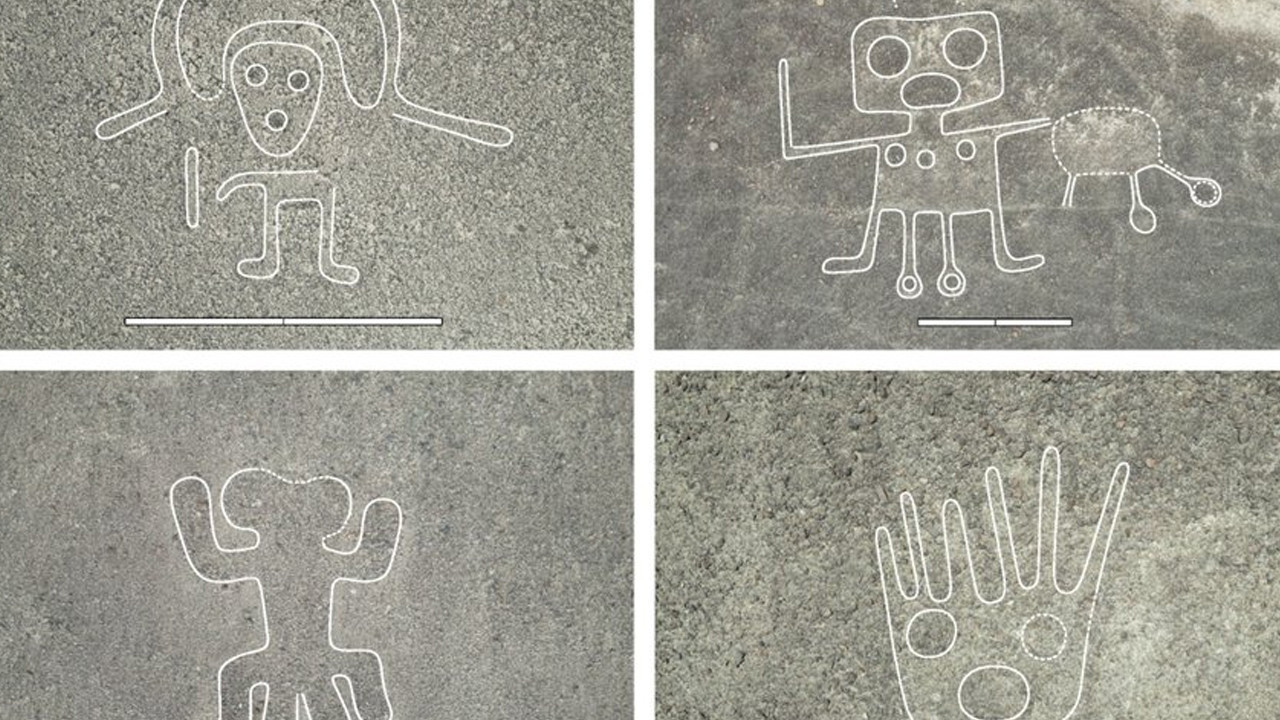 Bilim insanları, Peru'nun güneyindeki Nazca Çölü'nde yapay zeka yardımıyla 303 yeni jeoglif keşfetti. Bu figürler arasında uzaylıya benzeyen insan şekilleri, bıçak tutan katil balinalar, develer, kediler ve Pixar’ın Wall-E robotuna benzer bir figür yer alıyor. Ancak bu gizemli şekillerin ne amaçla yapıldığı hala tam olarak bilinmiyor.