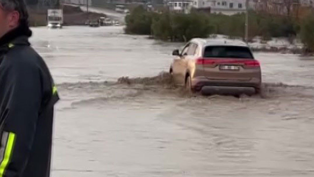 Adana'da şiddetli yağış sonucu oluşan su birikintisinden araçlar geçemezken bir TOGG suların içinde ilerledi. O anlar cep telefonu kamerasıyla görüntülendi.