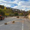 Yol kenarında 600 metre uzunluğunda duvar üzerine çelik bariyer imalatı sürerken, güzergah çalışma süresince trafiğe kapatıldı.