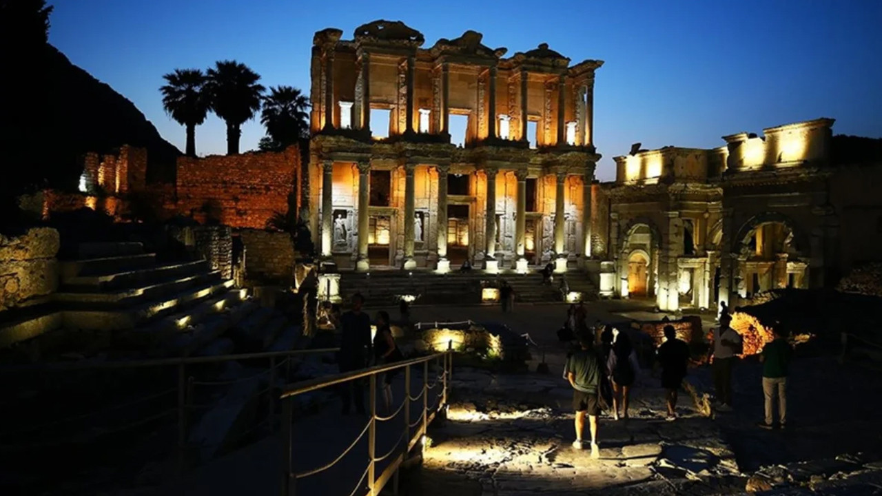 UNESCO Dünya Miras Listesi'nde yer alan Efes Antik Kenti, gece müzeciliği uygulaması kapsamında yenilenen ışıklandırmasıyla ziyaretçilerini ağırlıyor.