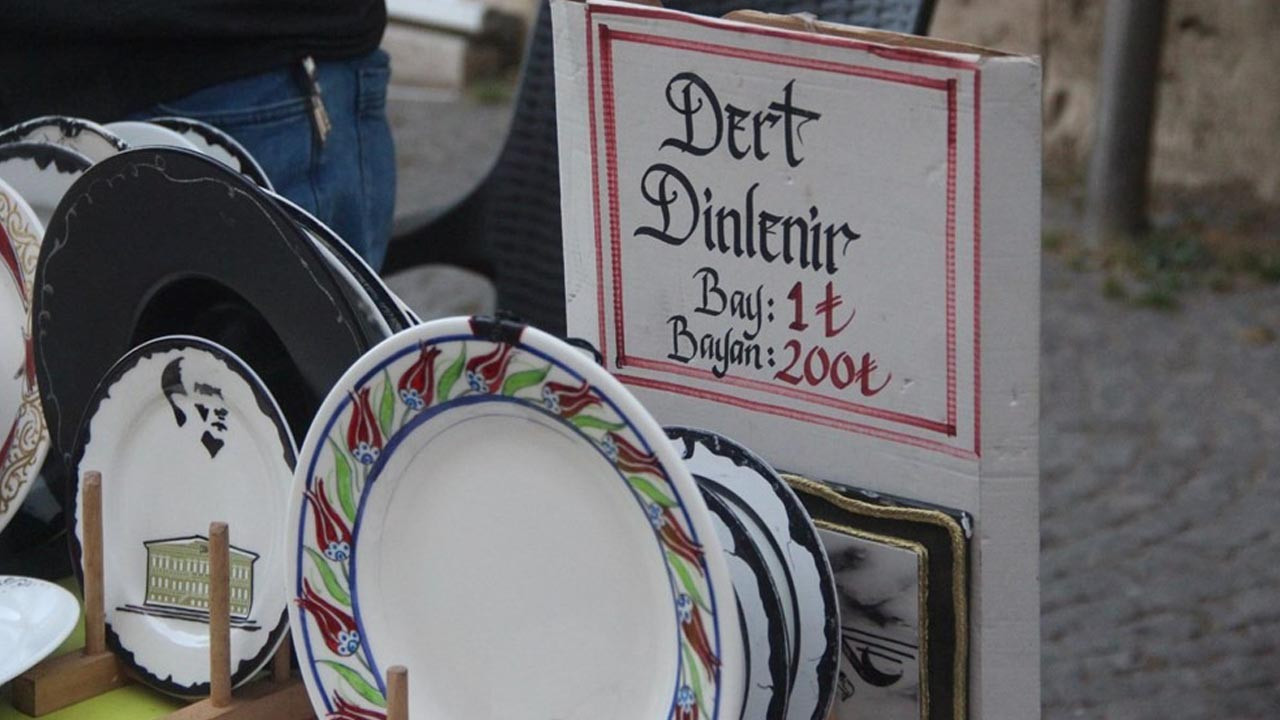 Sivas’ta kaligrafi sanatçılığı yapan Selçuk Yıldız, kentin işlek caddelerine tezgahını kurarak hem satış yapıyor hem de insanların dertlerini dinliyor. Yıldız, dert karşılığı kadınlardan 200, erkeklerden ise 1 TL talep ediyor.