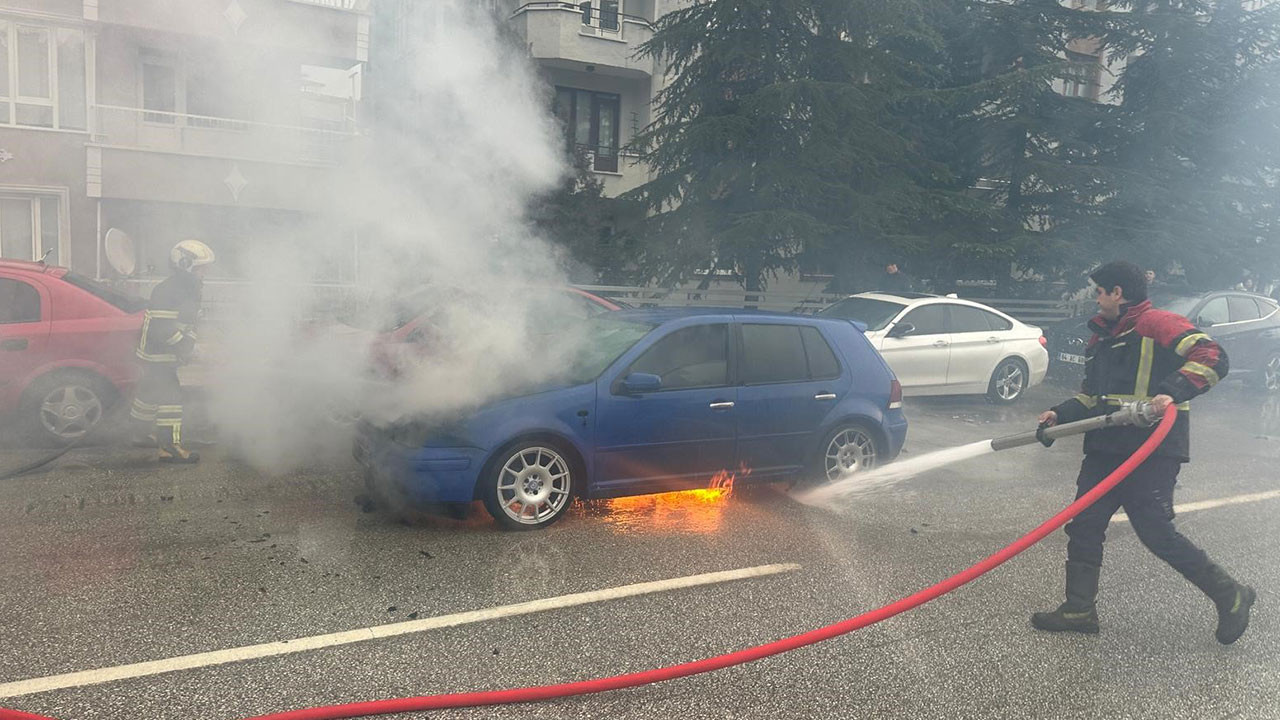 Uşak'ta seyir halindeyken motor kısmından alev alan otomobil, itfaiye ekiplerince söndürüldü.