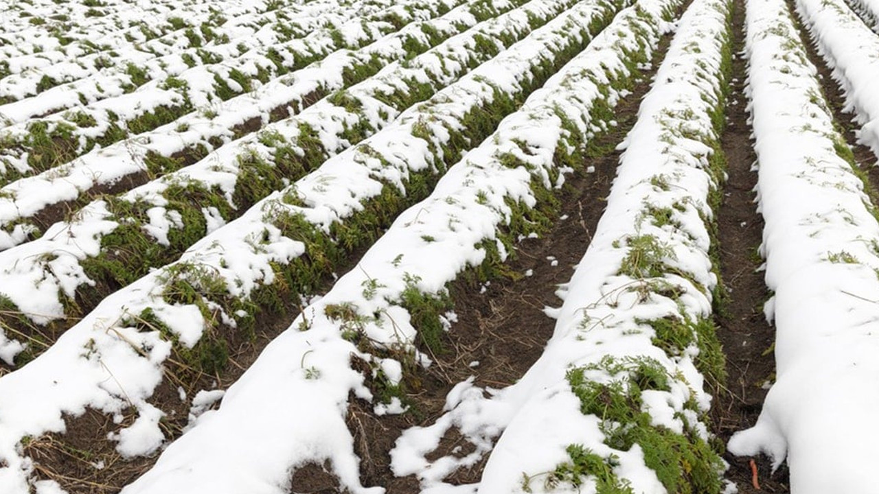 Tarım alanlarına yönelik çalışmalarına devam eden çiftçiler doğanın zorlu koşullarından en iyi şekilde faydalanmak için mahsullerini yoğun çabayla hasat etmeye devam ediyor. Karla kaplanmış bahçelerine kürek ve çapayla giderek, karın altındaki ürünlerini temizleyen çiftçiler, kışın zorlu şartlarına rağmen verimli bir hasat gerçekleştirdi. Karın altında tazeliklerini koruyan havuçlar, zorlu kış günlerinde bozulmadan kendilerini koruyor.