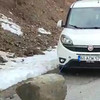Yola düşen kayayı otomobilleriyle çektiler