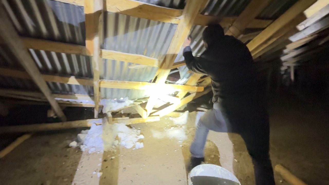 Hakkari’nin Yüksekova ilçesinde son yılların en yoğun kar yağışı etkili olurken, Güllüce köyündeki caminin çatısı biriken karın ağırlığıyla çöktü. İmamın anonsuyla bir araya gelen köy sakinleri, cami çatısında kar temizleme çalışması başlattı.